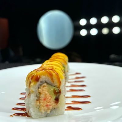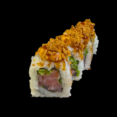 Interno: tonno e iceberg; esterno: spicy mayo, teriyaki, cipolla croccante...