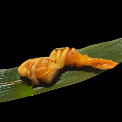 All’interno: surimi, salmone e philadelphia; all’esterno: crunch, teriyaki e philadelphia....